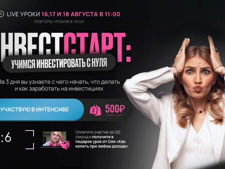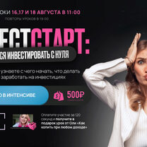 Август - сентябрь 2023 Курс, на котором вы начнете инвестировать — гарантированно. Длительность — 2 недели Обучение идеально подходит для новичков. Стартовый капитал для инвестиций может быть любой — от 1000 рублей Программа курса Установочная встреча Открываем брокерский счет – российский и