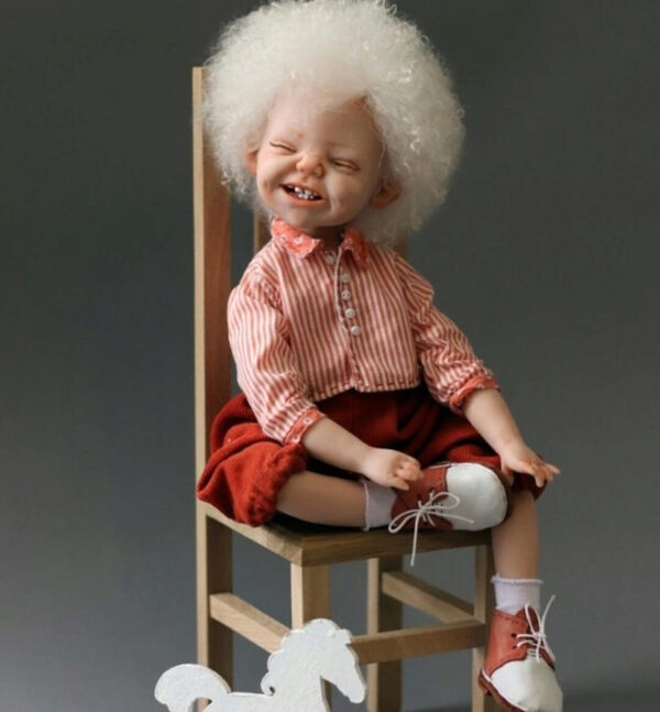 Лепка деталей куклы из самозатвердевающего пластика с поворотной головой и армированными пальчиками рук. Обработка деталей, роспись. Создание несъемного паричка из козьей шерсти. Пошив аккуратного тела со шплинтовым креплением конечностей и опилковым наполнителем. Сборка шарнирного крепления
