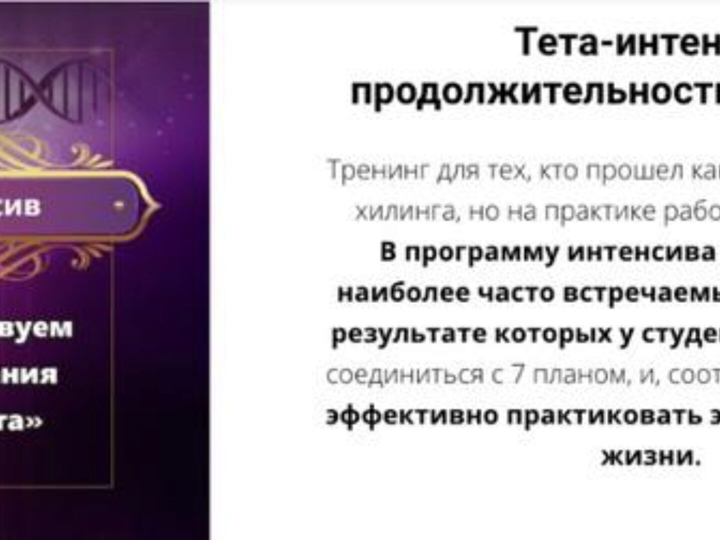 Программа интенсива ЧАСТЬ ПЕРВАЯ 1. Кто такой Творец и как соединиться с энергией Безусловной любви, чтобы происходили исцеления? 2. Почему не получается сканировать пространство другого человека? Какие убеждения и страхи блокируют доверие своей интуиции? 3. Как различить во время сканирования: это