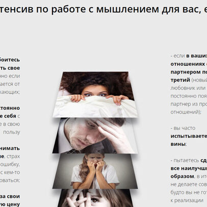 Марафон «Мышление на миллион» Урок 1: «Из мечты в реальность, от желаний к целям» Урок 2: «Как победить хаос в жизни и успевать все?!» Урок 3: «Точка фокуса» Урок 4: «Эффективная коммуникация» Урок 5: «Денежные законы» Урок 6: «Работа с родом. Родовые программы» Урок 7: «Денежные сценарии» Урок 8:
