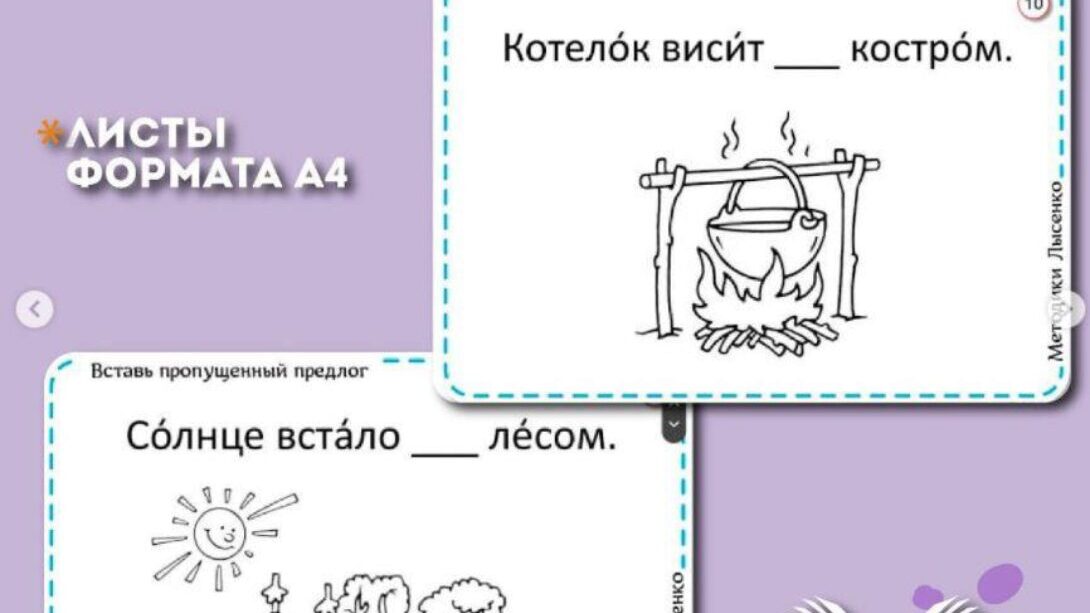 Тут я вспомнила, что у меня есть специальное пособие для дошколят «Вставь пропущенный предлог». Эти листы мы используем на дошкольных курсах по развитию речи.