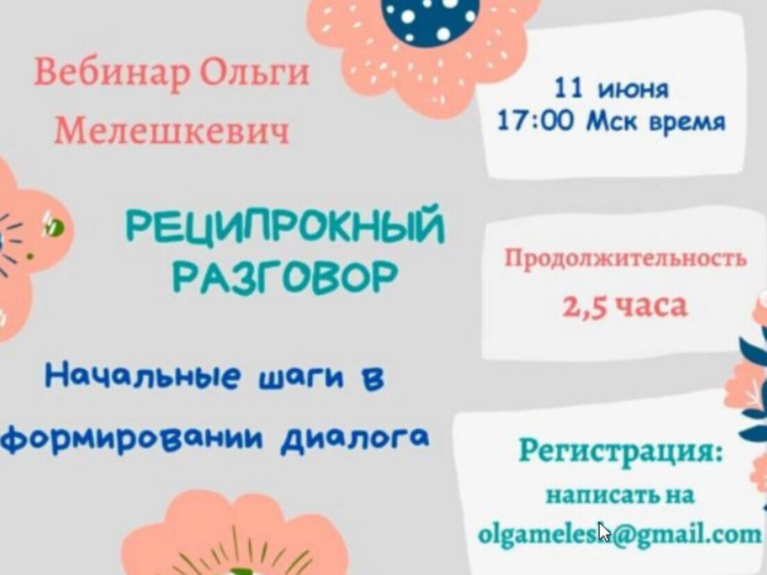 Отзывы о курсе «Реципрокный разговор: начальные шаги в формировании диалога» от Ольги Мелешкевич