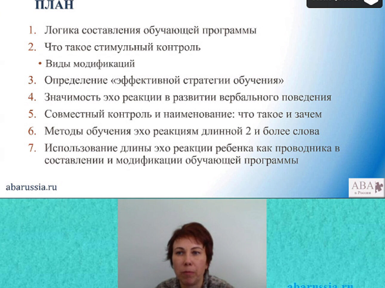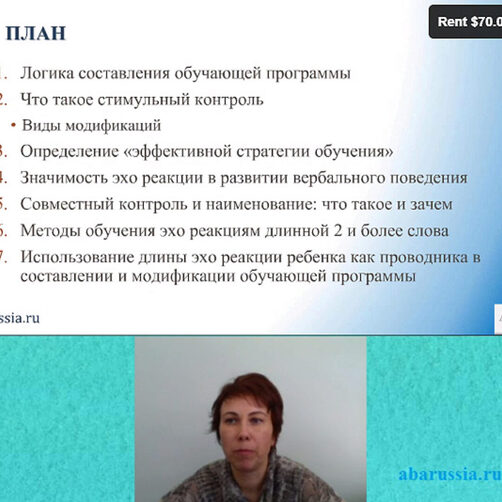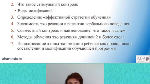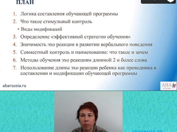 Продолжительность: 5 часов (2 части) 1. Анализ механизмов, стоящих в основе совместного контроля 2. Что такое кумулятивный навык и что такое обобщенный навык 3. Определение наименования 4. Анализ вербального поведения на основе формирования наименования (наименование – это не тоже самое, что навык