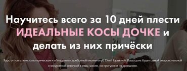 Курс от топ-стилиста по прическам и обладателя серебряной кнопки ютуб Оли Нарыжной. Ваша дочь будет самой очаровательной и аккуратной девочкой в школе.