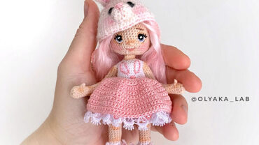 Полностью описание вязания всей куклы с каркасом, вышивка глаз, прическа, одежда (снимается только шапка и юбка)