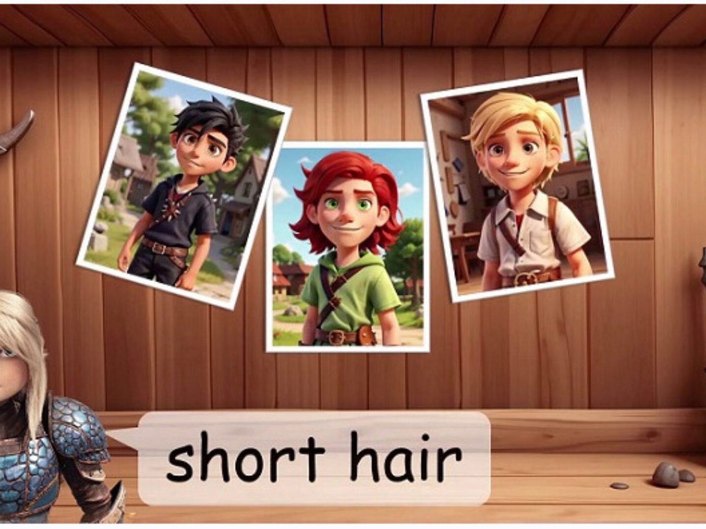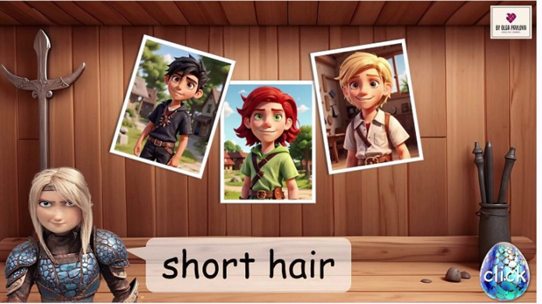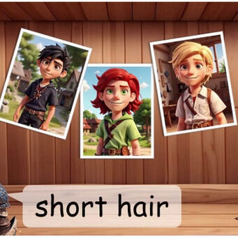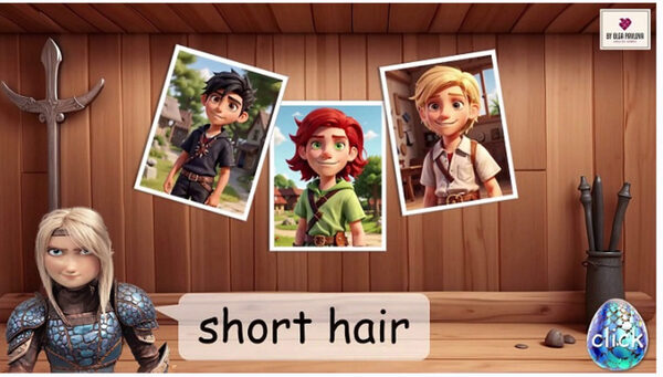 - вводим/повторяем hair (short, long, curly, wavy, straight, brown, dark, blond, red)