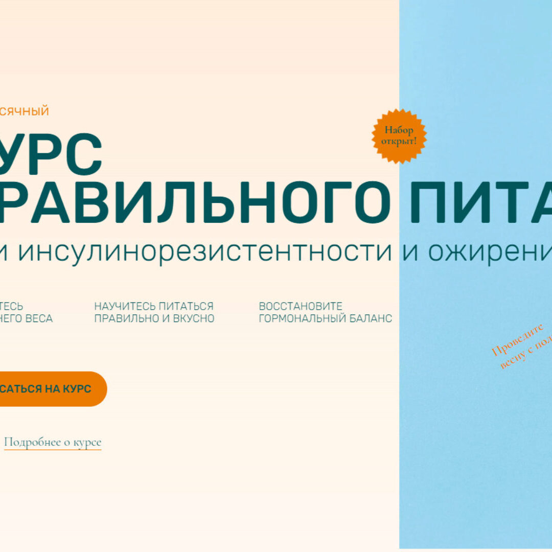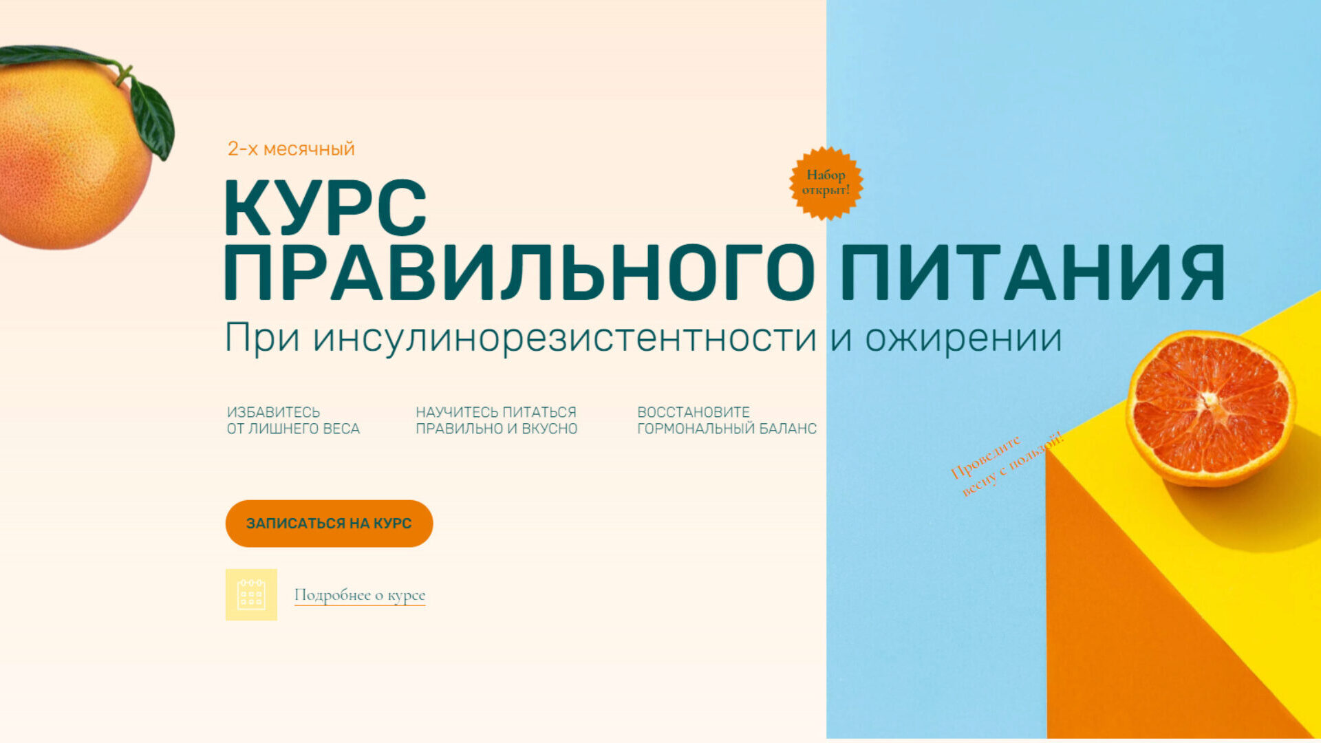 Разработала этот курс специально для пациентов с инсулинрезистентностью и ожирением. На нем пациенты избавляются от неправильных привычек в питании, с успехом замещая их на новые — здоровые!