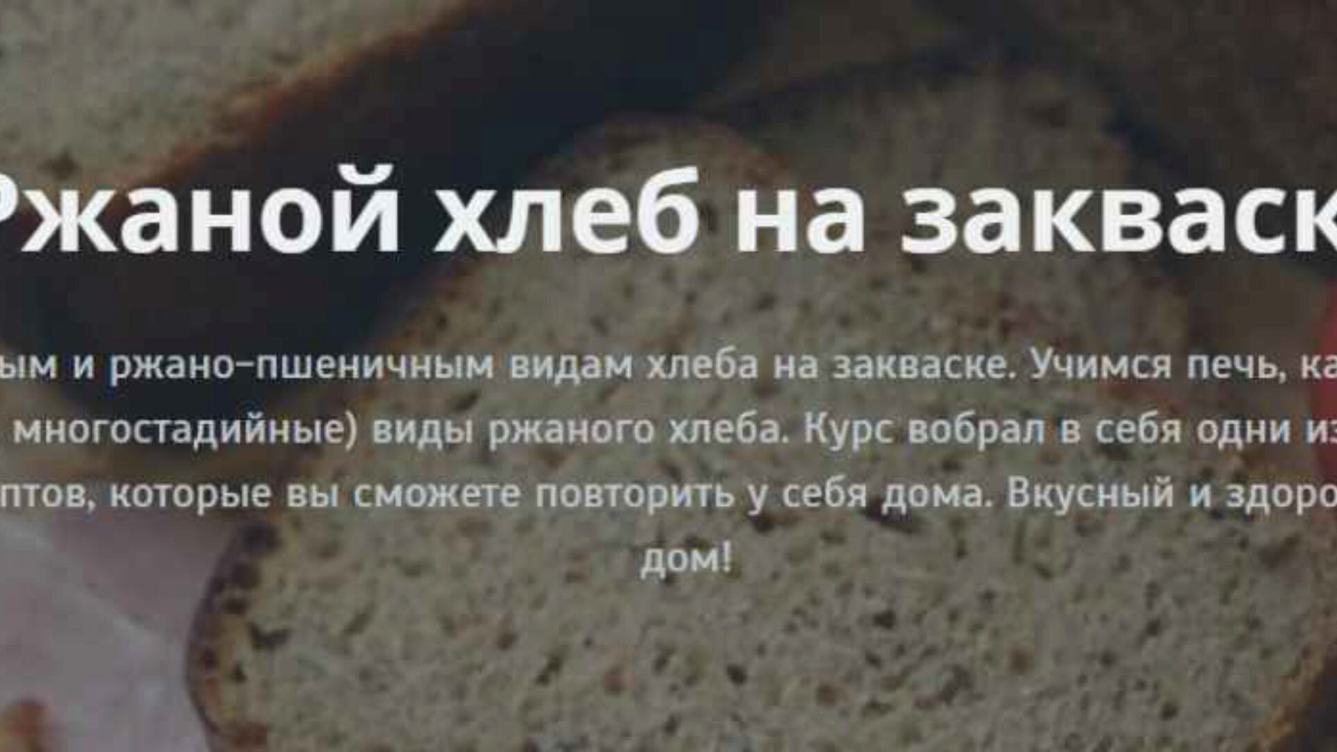 Описание курса: Друзья, ржаной это мой любимый хлеб! И этот курс по выпечке содержит самые популярные сорта, которые вы когда-либо встречали на полке в магазинах. Это очень здоровый хлеб, только на ржаной закваске. Здесь вы узнаете, как можно испечь его самостоятельно, дома у себя на кухне, из
