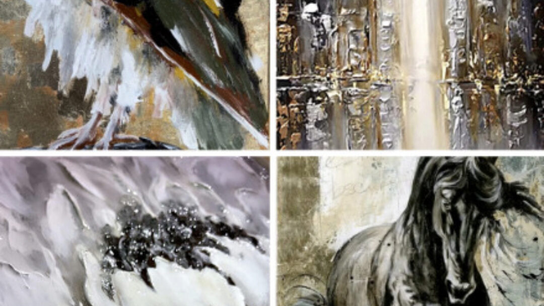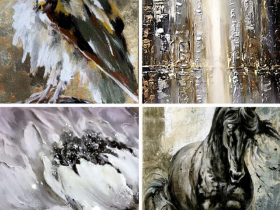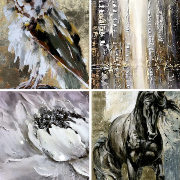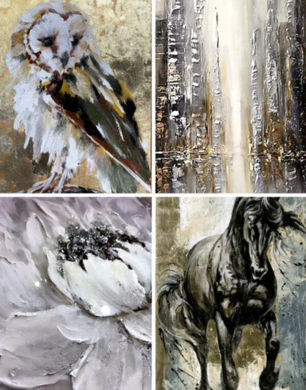 Создаём 4 интерьерные картины в разных техниках (поталь, текстурная паста, глянец, декор)