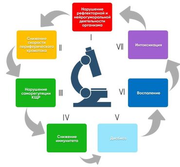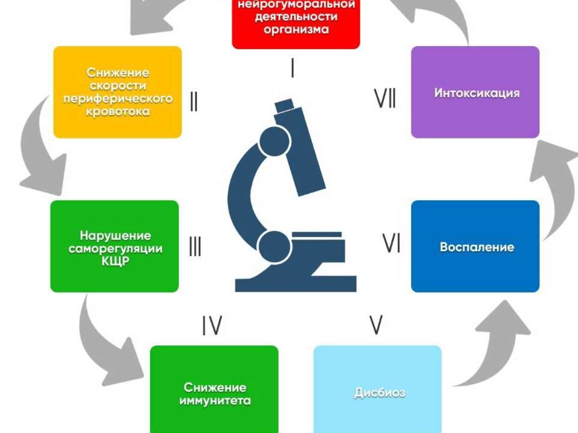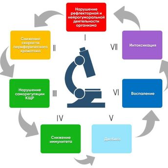 3. Нарушение саморегуляции кислотно-щелочного равновесия (застой и закисление).