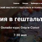 Серия праздничных вебинаров по гештальт-терапии и гештальтгипнотерапии Серия вебинаров где рассказываю про гештальт-терапию и мой подход - гештальтгипнотерапию. Наименование вебинаров: 1. Немного о гештальт-терапии (введение в теорию) (3 часа 2 минуты) 2. Прерывания в гештальт-терапии (2.42) 3.