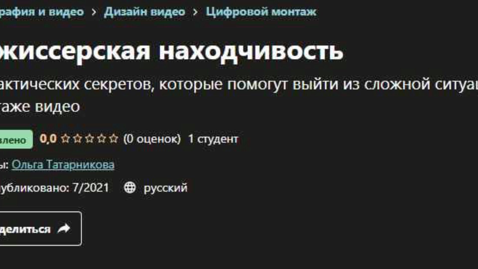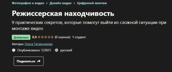 Ольга Татарникова «Режиссерская находчивость» — Udemy