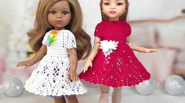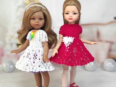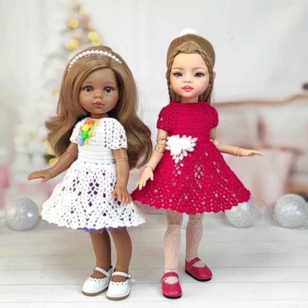 PDF журнал по вязанию кукольного наряда. Предназначен для кукол подружки Паола Рейна 32 см (Paola Reina), но может подойти и другим куклам с аналогичными размерами.