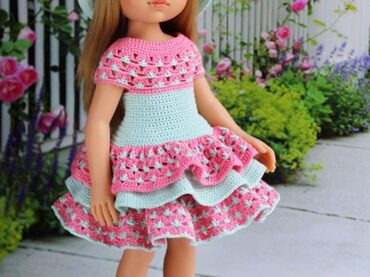 PDF журнал по вязанию кукольного наряда. Предназначен для кукол подружки Паола Рейна 32 см (Paola Reina), но может подойти и другим куклам с аналогичными размерами.