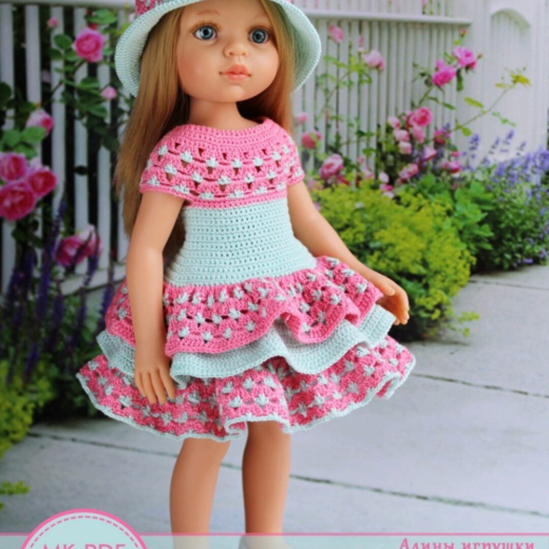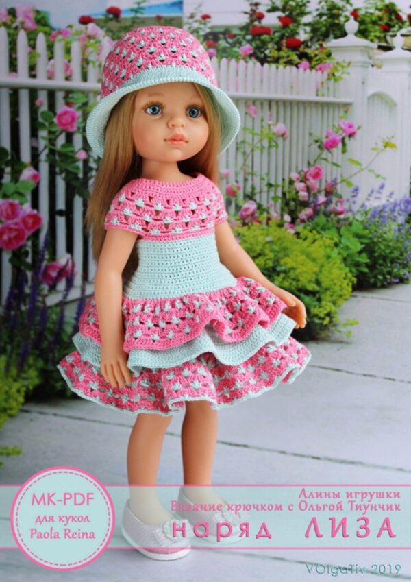 Ольга Тиунчик «PDF мастер-класс по вязанию крючком наряда Лиза для кукол типа Паола Рейна» — Алины игрушки - вязание для кукол Паола Рейна