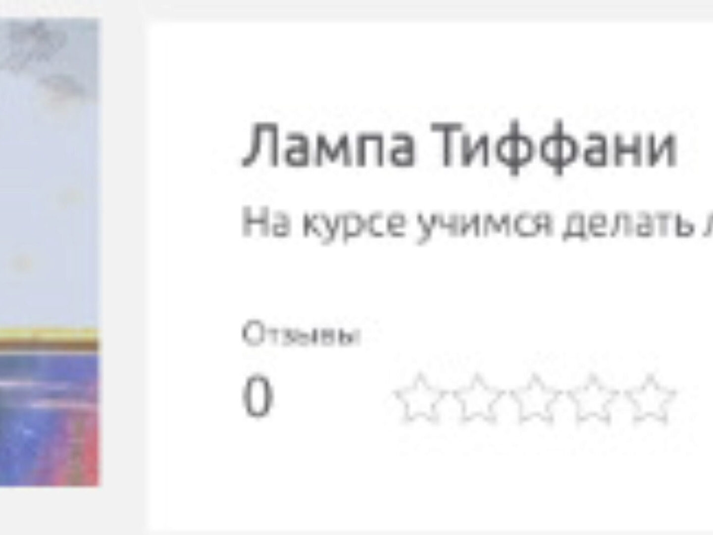 Курс Витраж Тиффани с нуля Учимся делать витраж в технике Тиффани Чему вы научитесь Создание витража в Технике Тиффани Требования интерес и желание учиться витражным техникам Описание Идеален для тех, кто хочет быстро с нуля освоить технику Тиффани и сразу зарабатывать на своих изделиях. Даже если