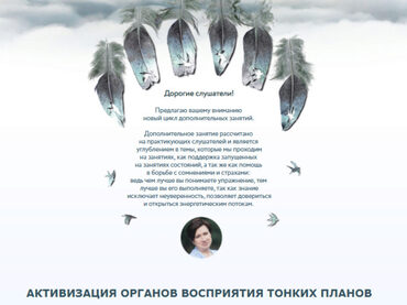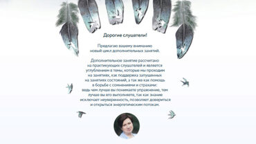 Дорогие слушатели! Предлагаю вашему вниманию новый цикл дополнительных занятий. Дополнительное занятие рассчитано на практикующих слушателей и является углублением в темы, которые мы проходим на занятиях, как поддержка запущенных на занятиях состояний, а так же как помощь в борьбе с сомнениями и