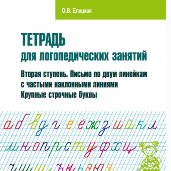 Ольга Елецкая «Тетрадь для логопедических занятий. Вторая ступень. Письмо по двум линейкам с частыми наклонными линиями. Крупные строчные буквы»