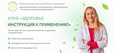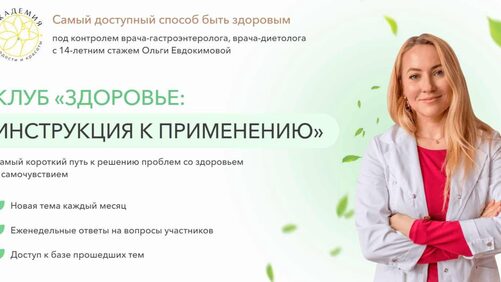 Клуб «Здоровье: инструкция к применению» – это: -> Решение ваших конкретных проблем. Без лишней теории и долгих лекций. Только практические шаги. -> Новая тема по вашим запросам каждый месяц и база знаний из тем прошлых месяцев. -> Территория доказанной врачебной информации, переведенной