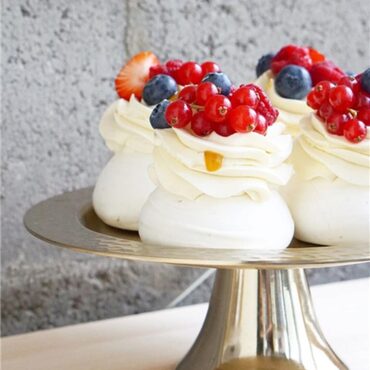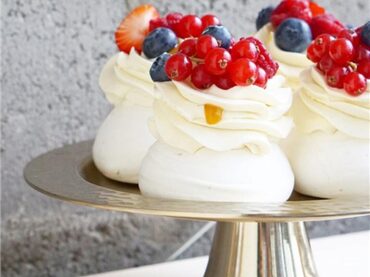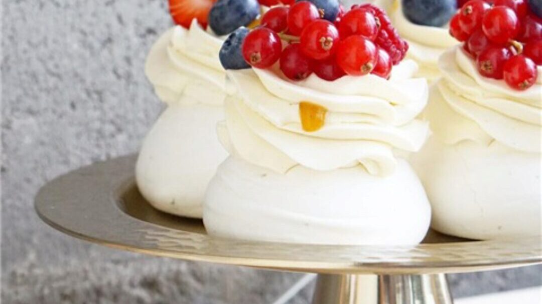В уроке подробная техкарта и видео приготовления сразу 3х десертов: пирожных Павлова, в виде торта и меренговый рулет.