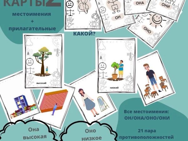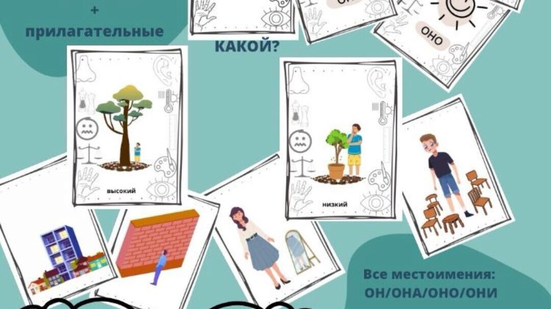 4) игра, в формате настольной игры с задачей потратить все карты ребенка, подобрав подходящее прилагательное и согласовав все существительные с местоимением и прилагательным.
