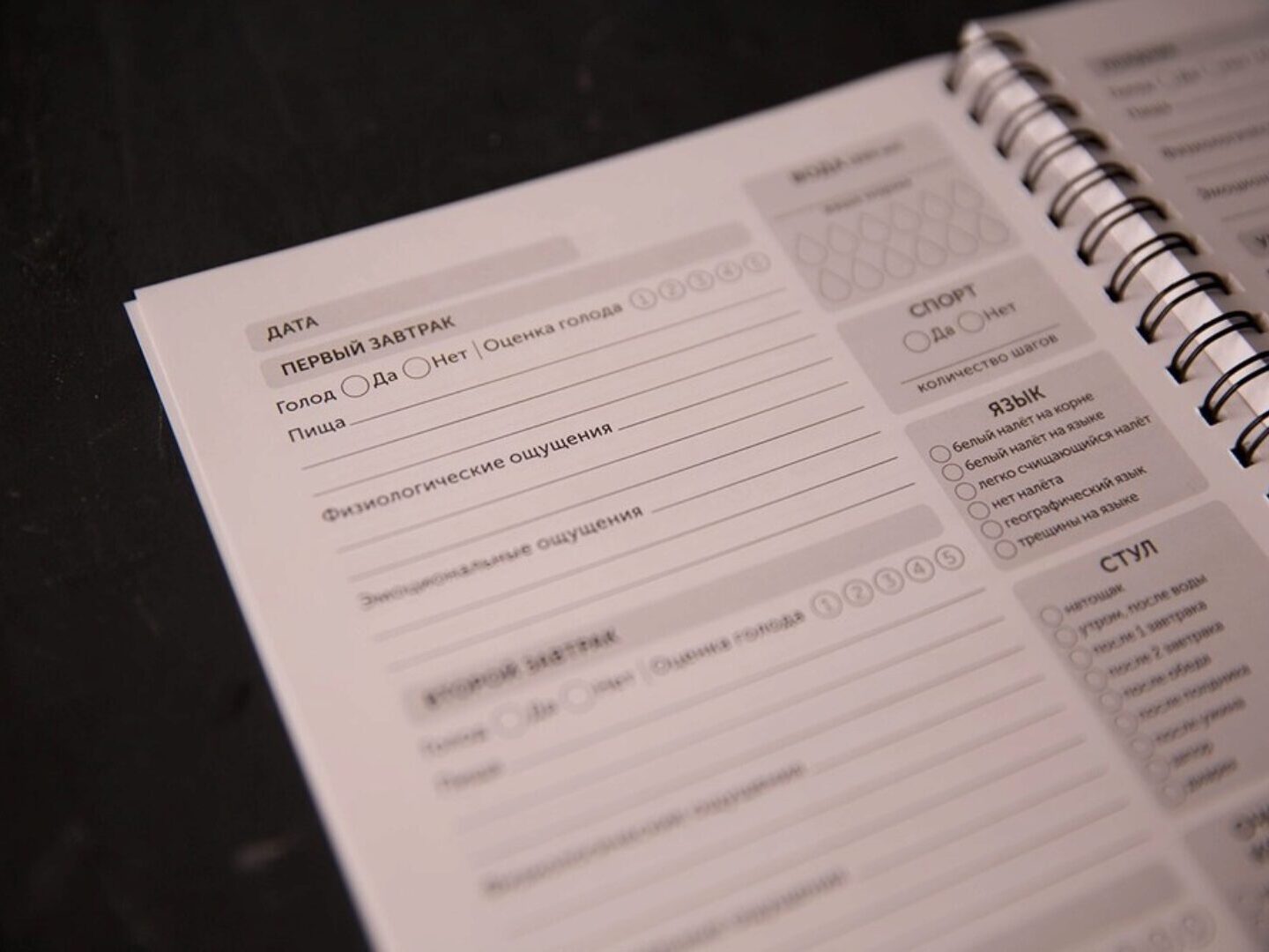 При помощи дневника питания FOOD BOOK вы начнете держать ФОКУС на своем здоровье. При чем не в голове, а работая с ним письменно - в дневнике. Это очень удобно и освобождает голову для решения других задач.
