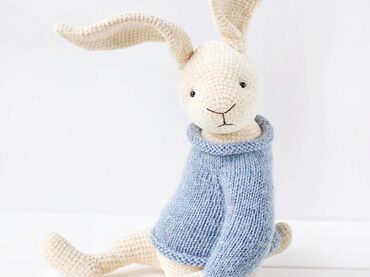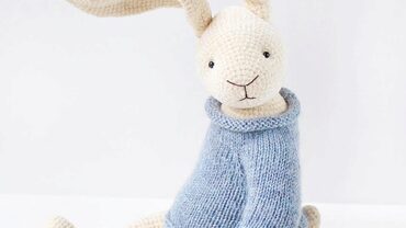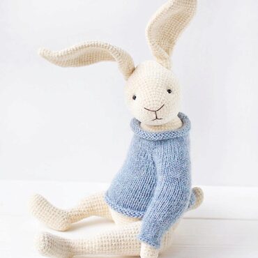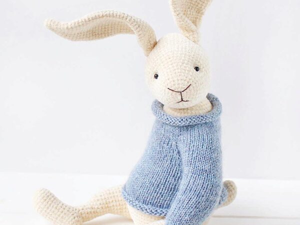 Пряжа для зайки ICE YARNS AMIGURUMI CHENILLE (250м/50г) 2 моточка, крючок 1,75 мм. Пряжа для свитера Drops Nord (170м/50г), спицы 1,8-2 мм.