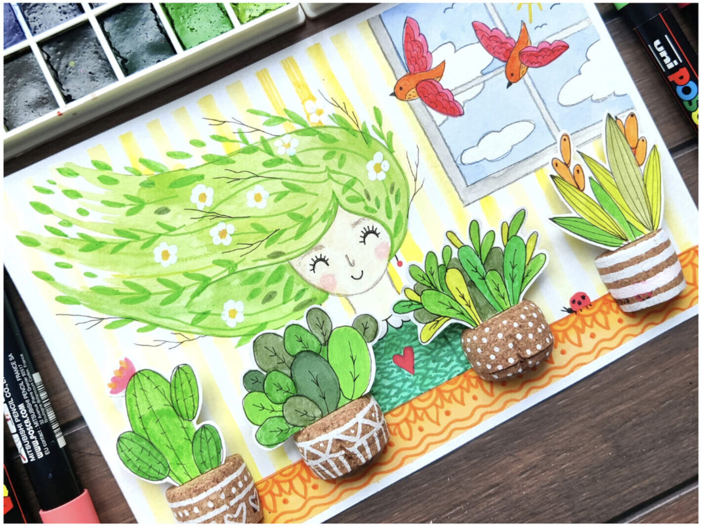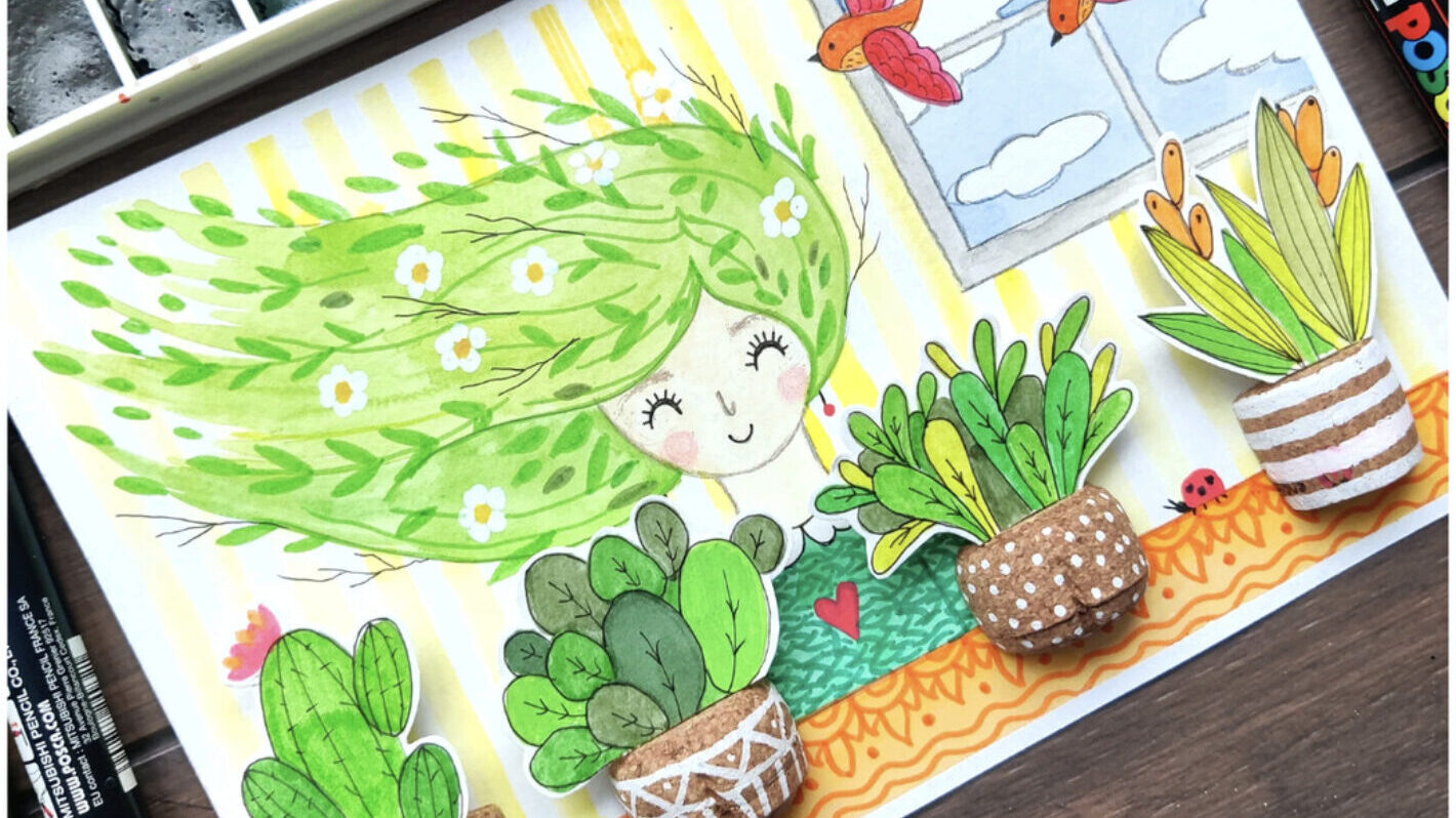 Помимо изучения тем окружающего мира будем осваивать композицию и новые техники Дополнительный иллюстративный материал. 4 красивых разворота в скетчбуке + отдельная творческая работа Материалы: Скетчбук без пружины (лучше квадратный), плотность бумаги не меньше 200 гр Акварельная бумага А4 Простой