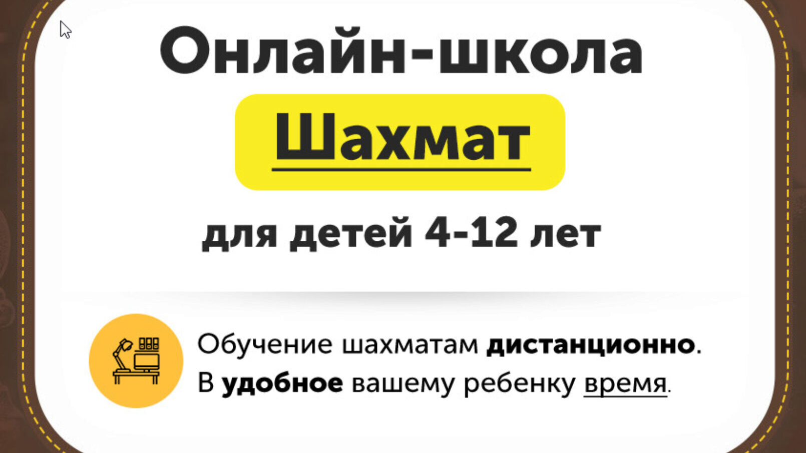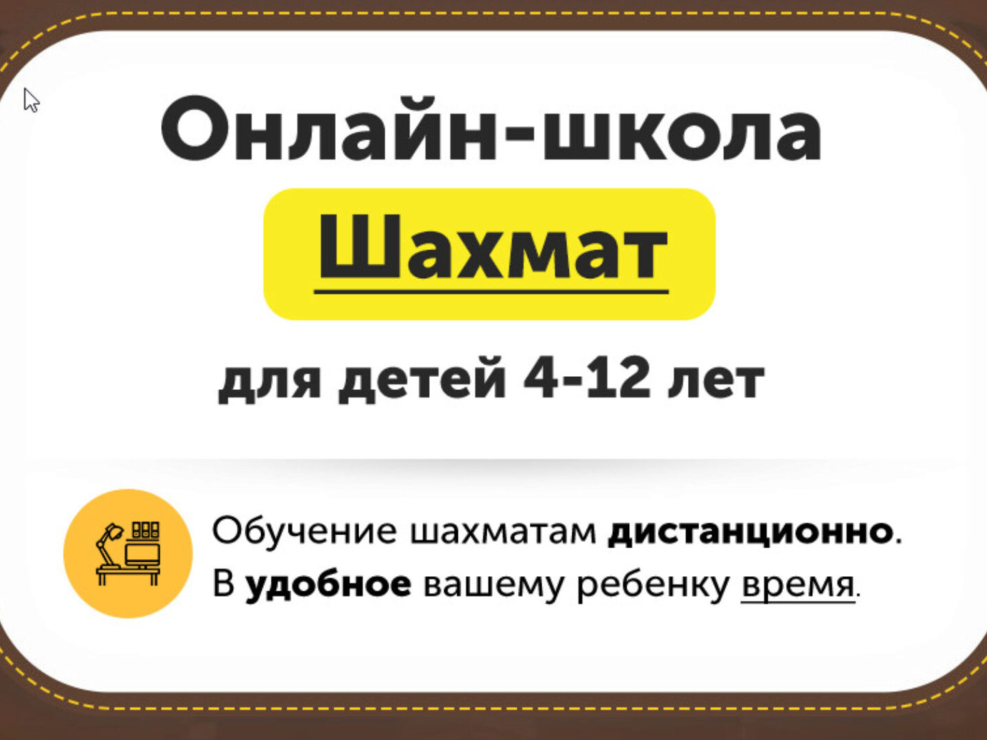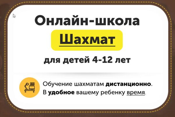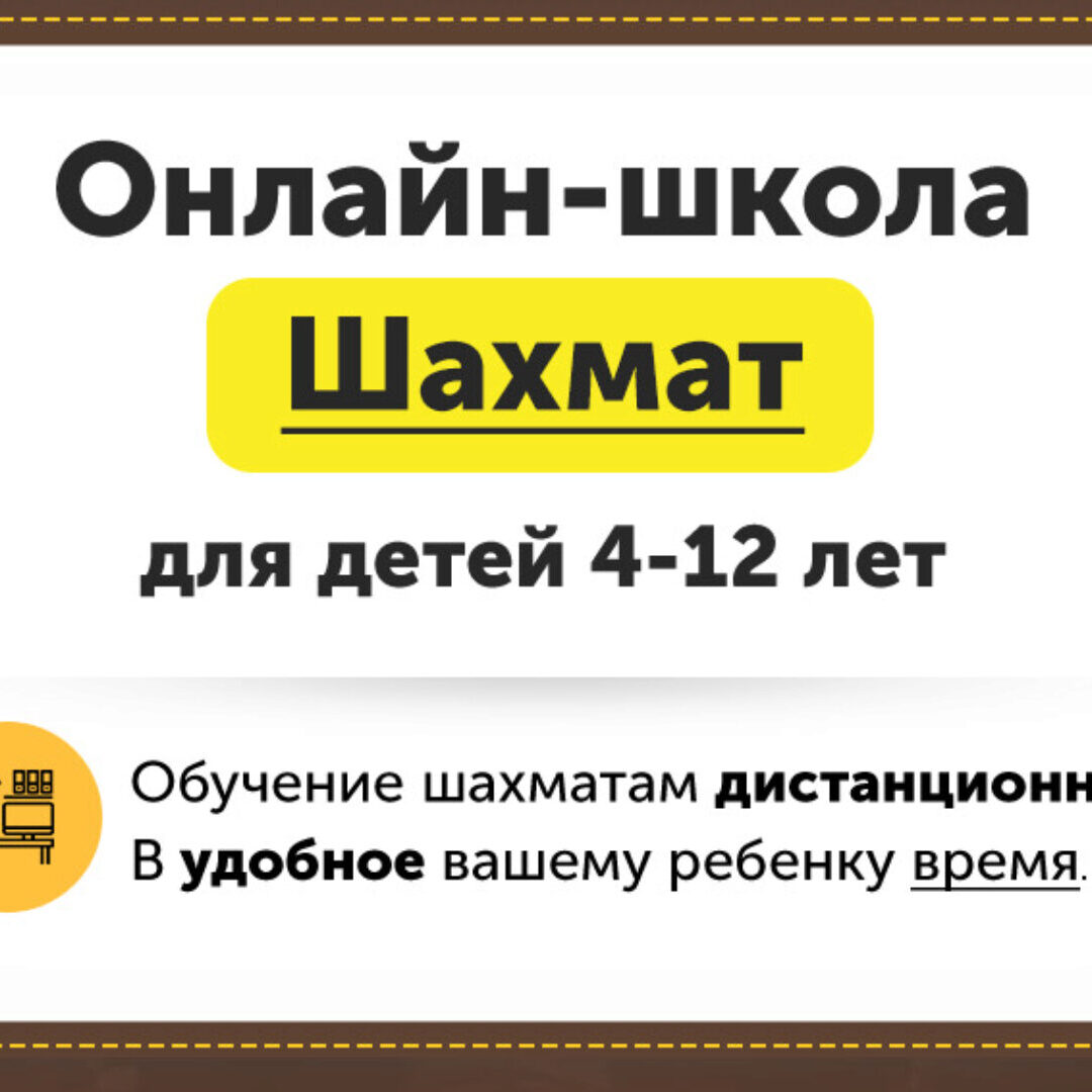 Онлайн школа шахмат Chessford. 4-12 лет. Второй месяц. Занятия шахматами развивают: Внимание и концентрация Логика и мышление Самостоятельность Успеваемость в школе Уверенность в себе Как проходят занятия 2 раза в неделю вы получаете новые видеоуроки. И выдается Домашнее задание, которое нужно