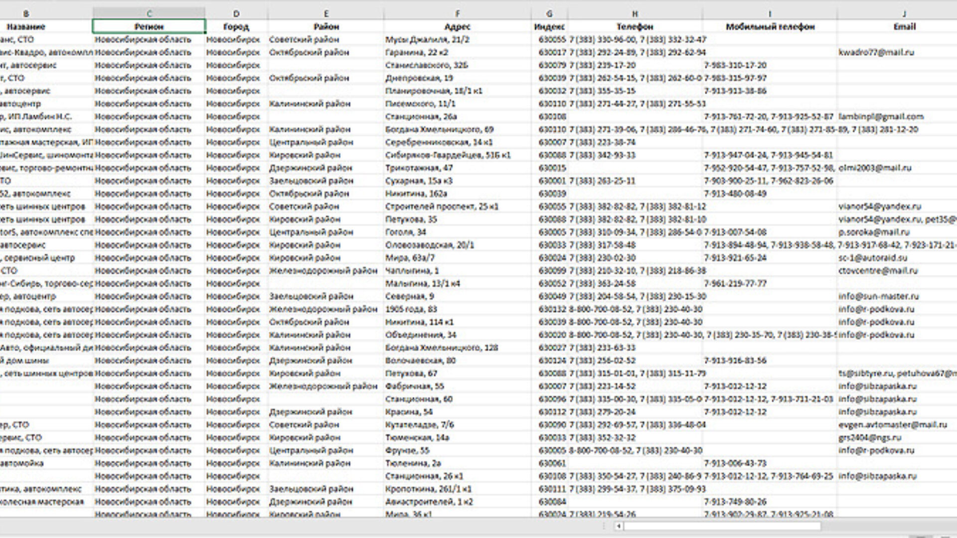 Информация о 4,8 миллионах организаций. 48727 городов и населенных пунктов шести стран (Россия, Казахстан, Украина, Кыргызстан, Азербайджан, Узбекистан)