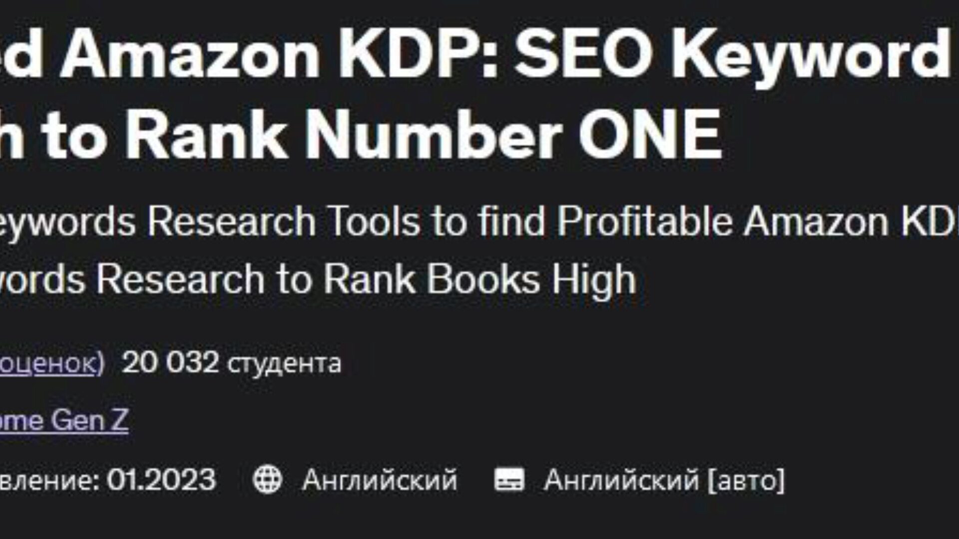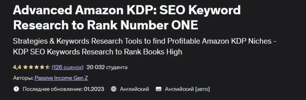 Отзывы о курсе [Udemy] Продвинутый Amazon KDP: Анализ ключевых слов в SEO для выхода на первое место (Passive Income Gen Z)