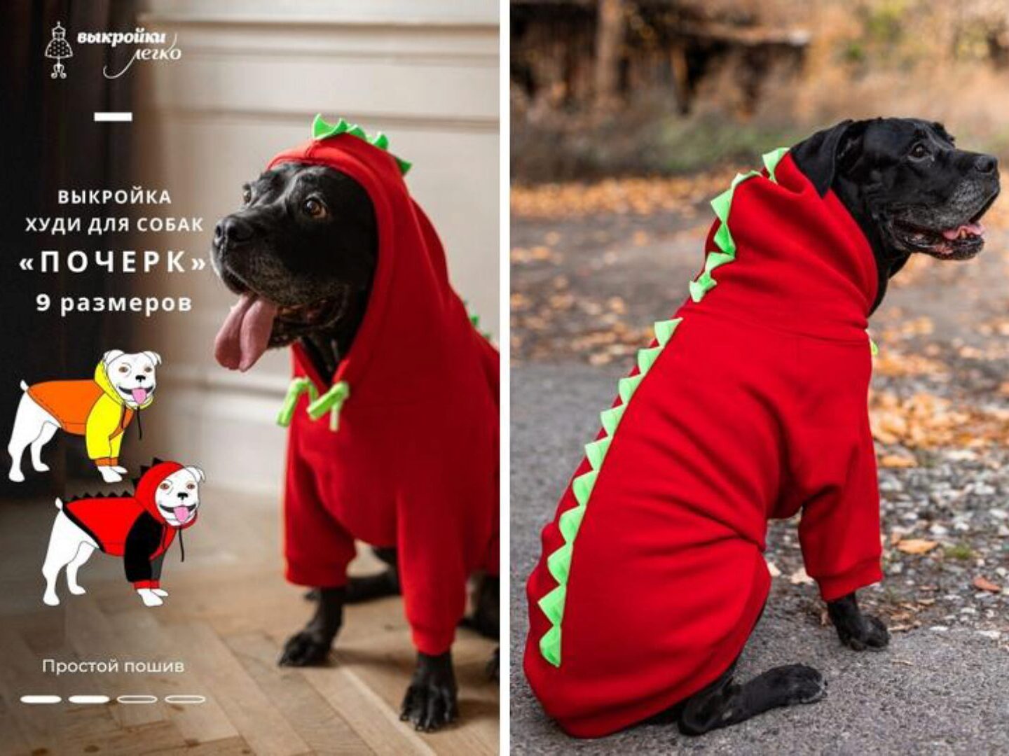 Худи для собаки Почерк. Размер XS Выкройка трикотажного худи для собак (унисекс). Спинка и животик цельнокроеные. Капюшон с люверсами и со шнурком. На спинке и капюшоне декоративный гребень. Рукава втачные с манжетами. Низ изделия обработан поясом. Выкройка худи выполнена на стандартных собак.