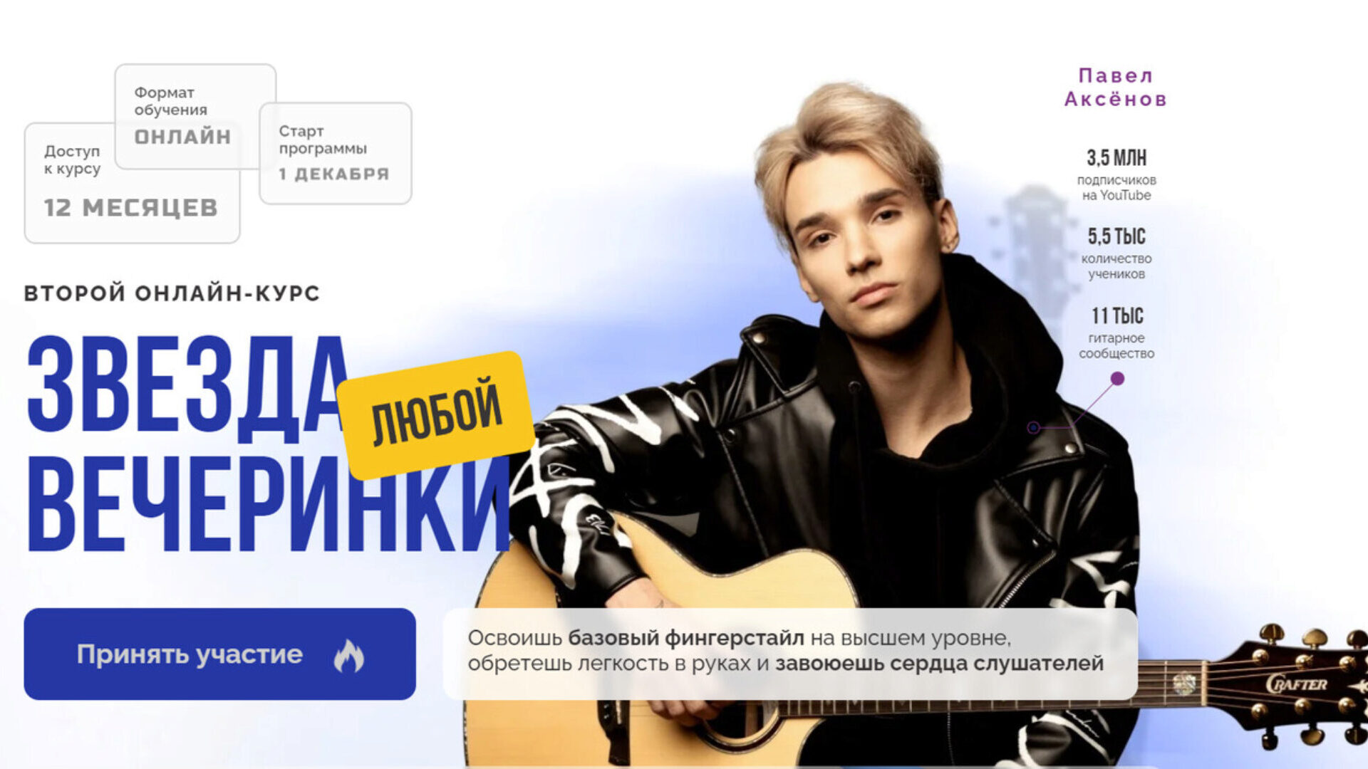 Результат: Узнаешь что такое фингерстайл, перкуссия, украшения и узнаешь чему ты научишься