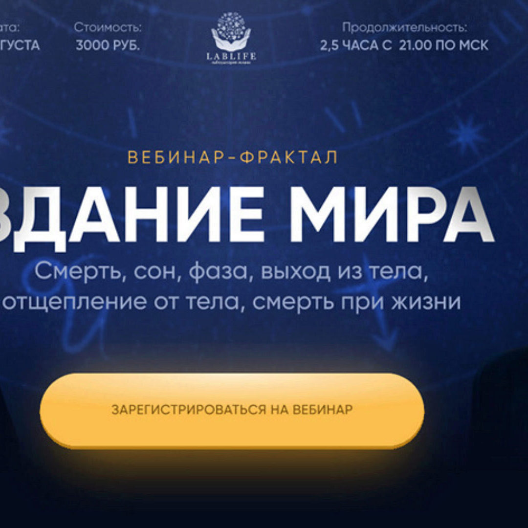Тема - Смерть, сон, фаза, выход из тела, отщепление от тела, смерть при жизни. Этот вебинар для Вас, если Вам интересны: Прошлые/параллельные/будущие жизни Желания и страхи, депрессия и нирвана Религия и псевдодуховность, технологии и история Наука и искусство, философия и политика Смерть и