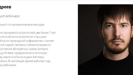 Павел Андреев - профессиональный астролог, руководитель собственной астрологической лаборатории LabLife, специалист по математическим методам прогноза. Занимается астрологией более 10 лет, имеет образование в этой области и высшее образование в области прикладной информатики. Павел специализируется