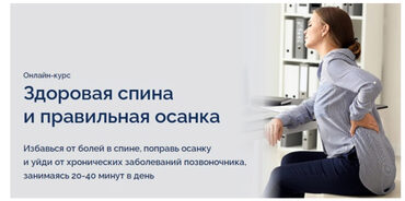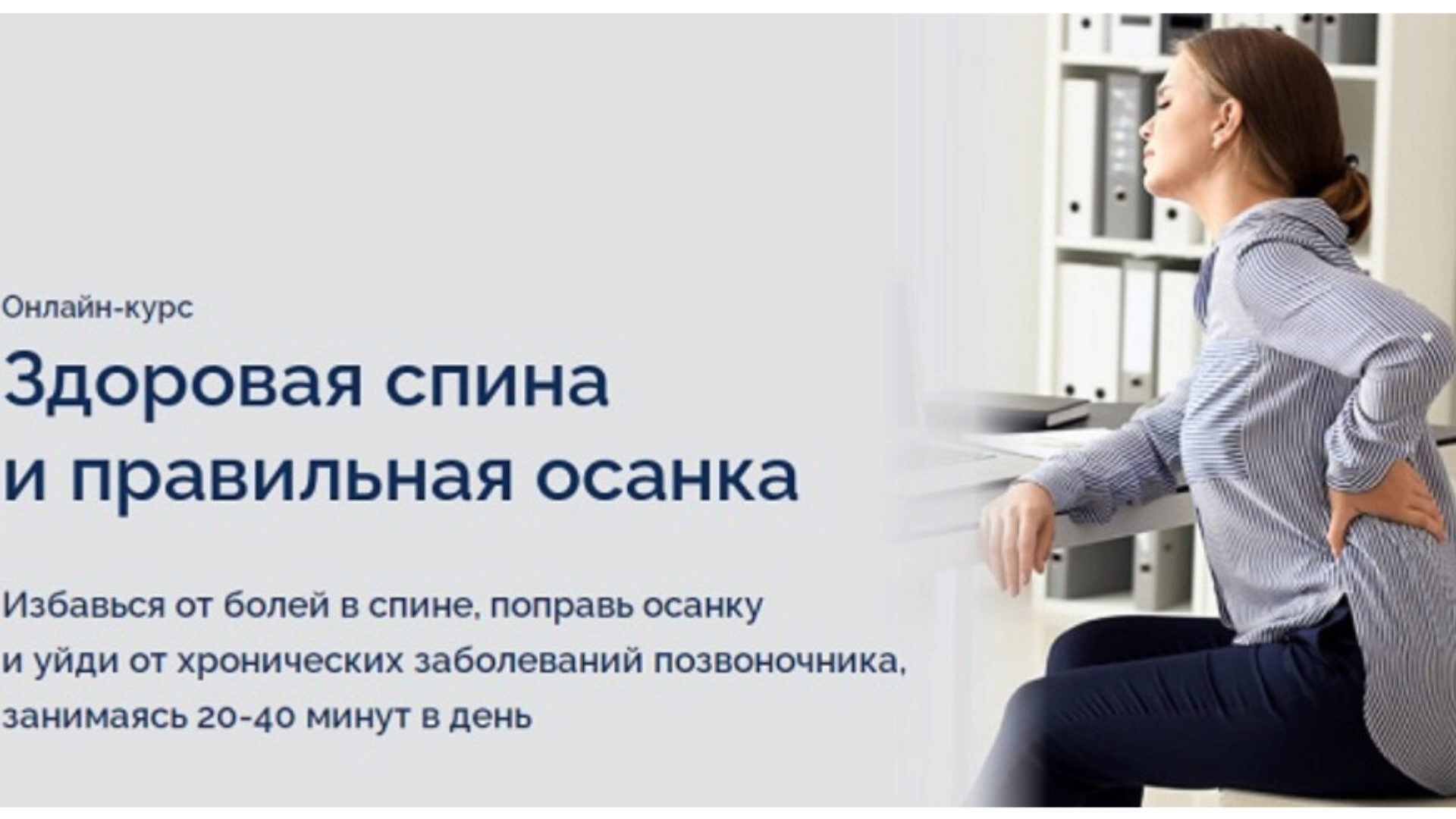 доровая спина и красивая осанка. Тариф Премиум Этот курс для вас, если: Cтать участником курса Вы мучаетесь от боли в пояснице Хотите сохранить здоровую спину даже в солидном возрасте Испытываете боли между лопатками после работы Чувствуете боль в области шеи после работы На курсе вы: Избавитесь от