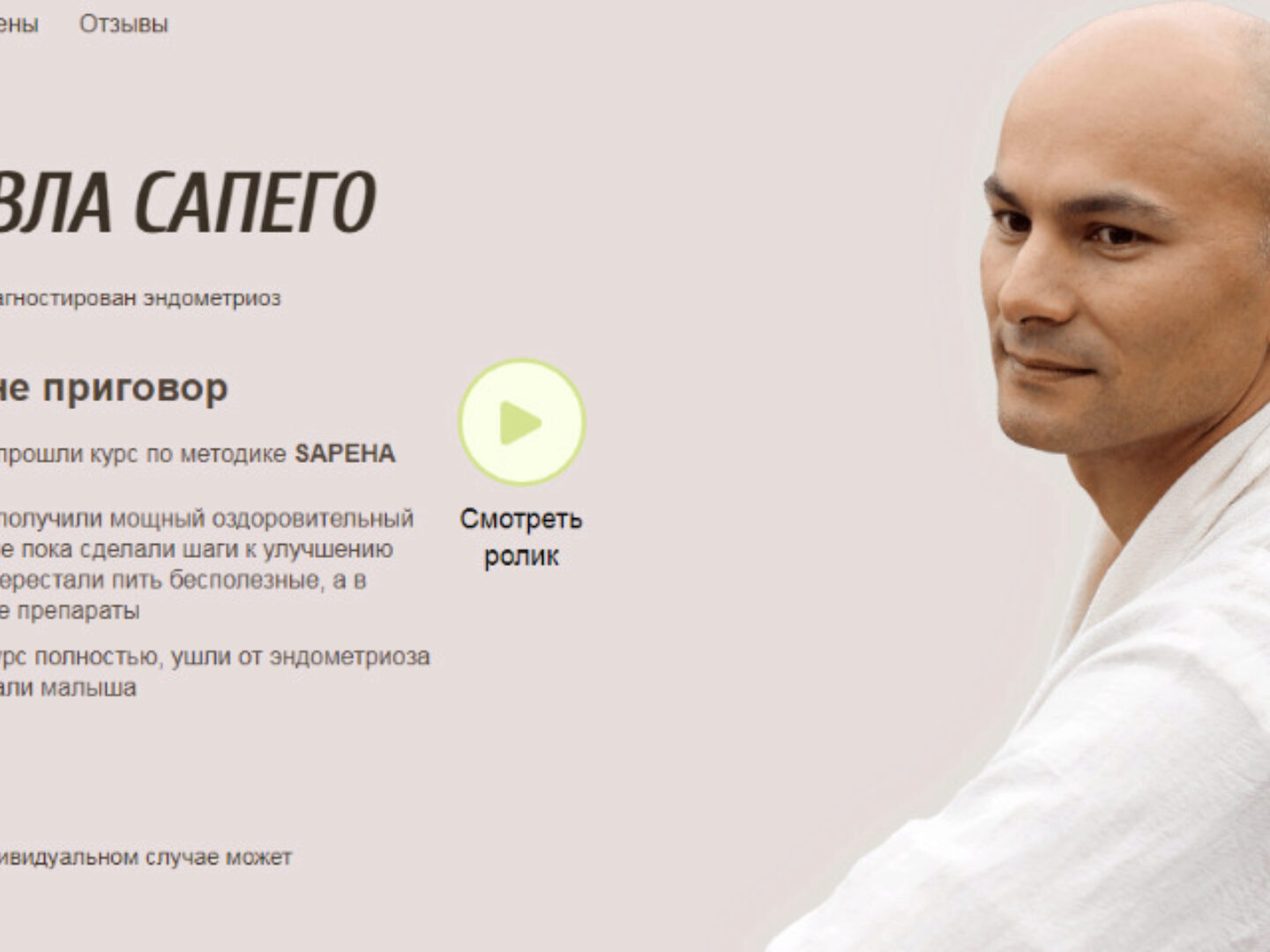 Спешите восстановить свой организм, свой гормональный фон, уйти от эндометриоза вместе с Павлом Сапего