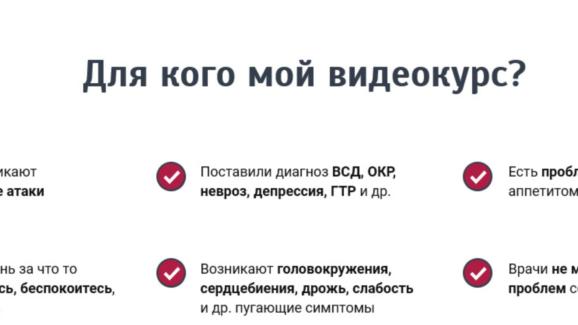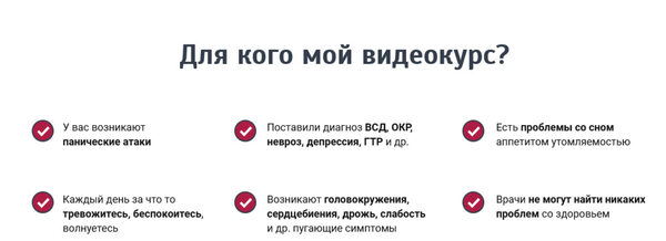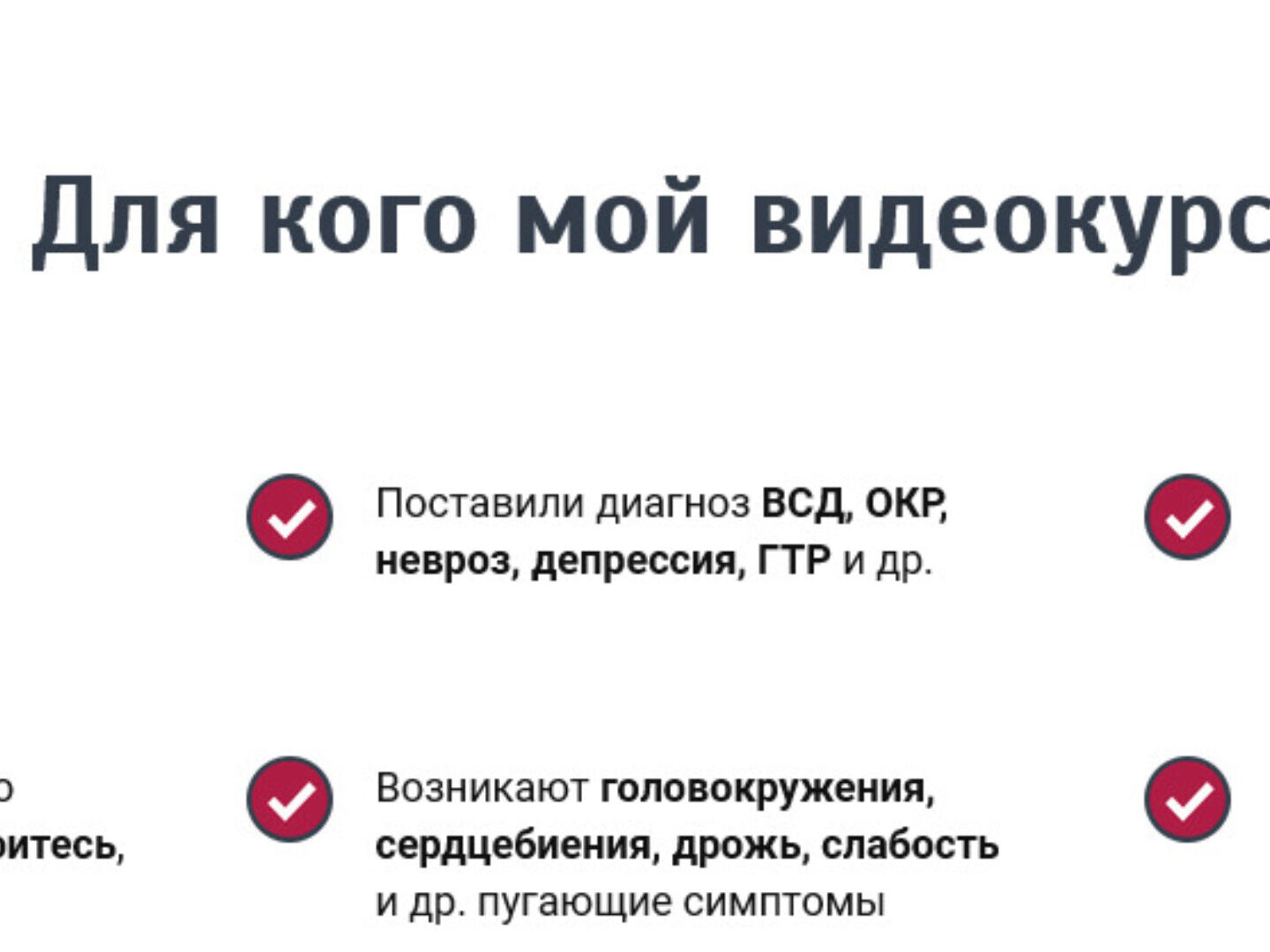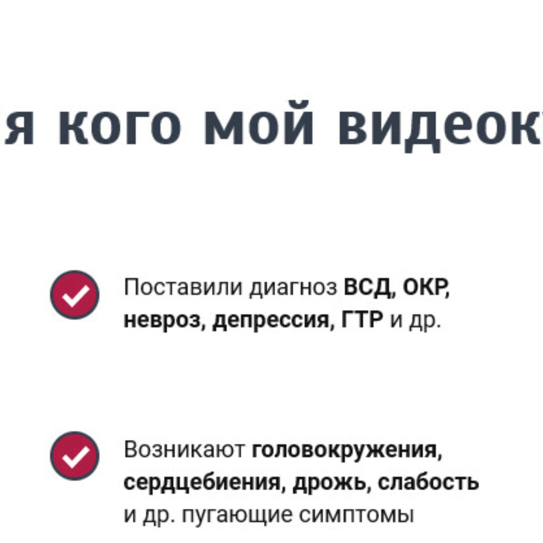 САМЫЙ ЭФФЕКТИВНЫЙ ОНЛАЙН ТРЕНИНГ НА РУССКОЯЗЫЧНОМ ПРОСТРАНСТВЕ За 30 дней Вы внедрите все необходимые инструменты, чтобы избавиться от Панических Атак, Вегетососудистой дистонии (ВСД) Навязчивых Мыслей (ОКР) и других неврозов, типа страхов сойти с ума и умереть. К ЗДОРОВОЙ ЖИЗНИ «Счастливая жизнь