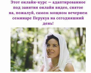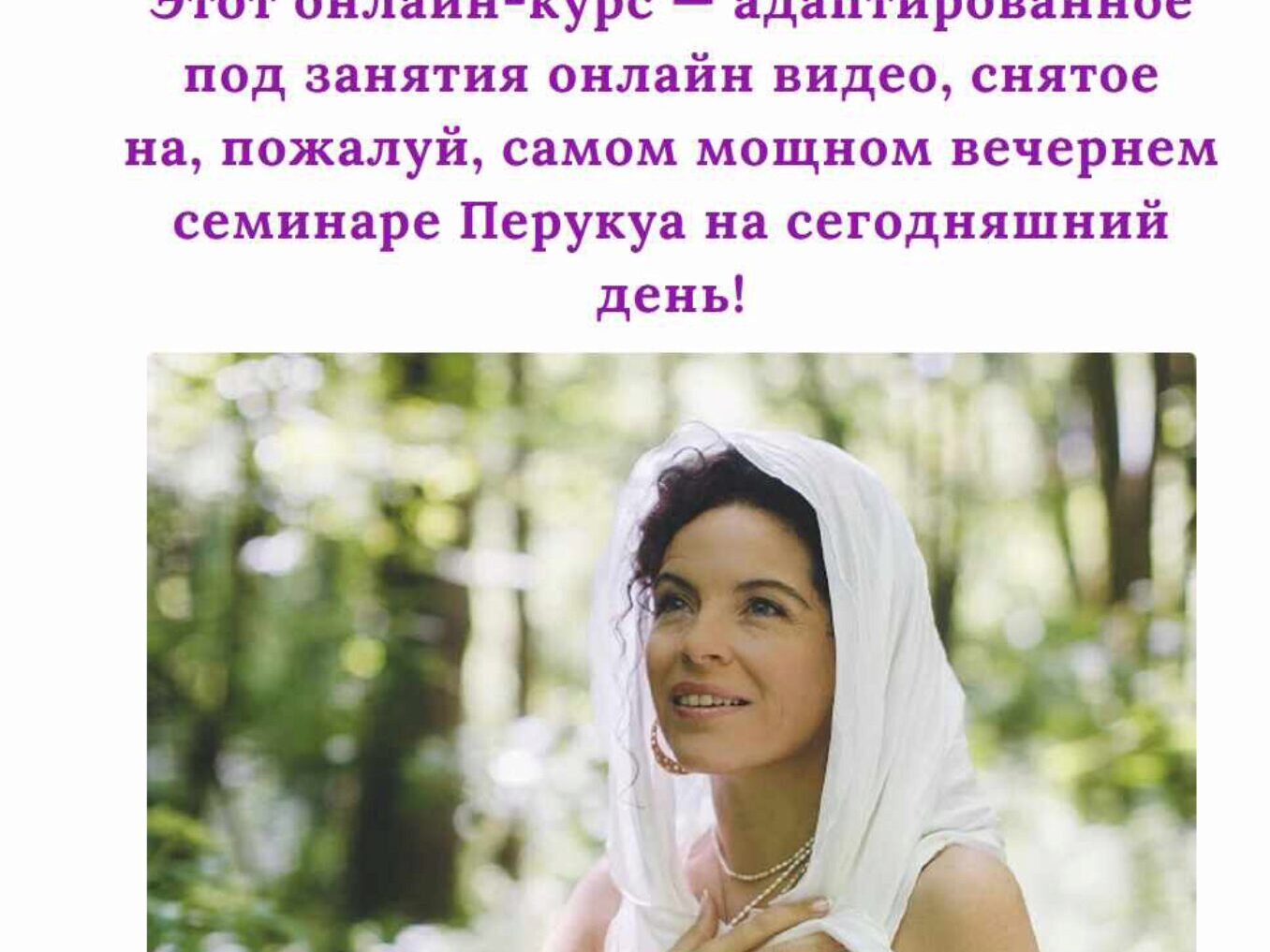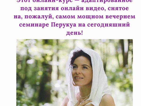 Уникальность этого 3-х часового онлайн семинара в том, что он сочетает авторские практики Перукуа с ее «новым», в чем-то исцеляющим голосом, которым она вживую исполняет запредельные, можно сказать, «невозможные» для человека звуковые палитры (идеально делать этот онлайн семинар в хороших наушниках), погружаясь в которые вы испытаете глубочайшие переживания, откроетесь и почувствуете зов и сияние своей Души!