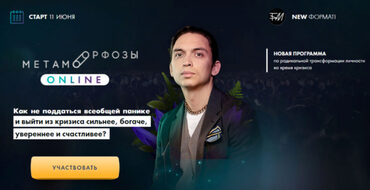 В результате марафона: * Узнаете все Методики и технологи применяемые на программе «Метаморфозы», и сможете их внедрить в свою жизнь* Поймете как влияют отношения с родителями на ваш бизнес и доход * Увидите, что конкретно нужно делать, чтобы стать лучше и начать изменения прямо сейчас * Услышите