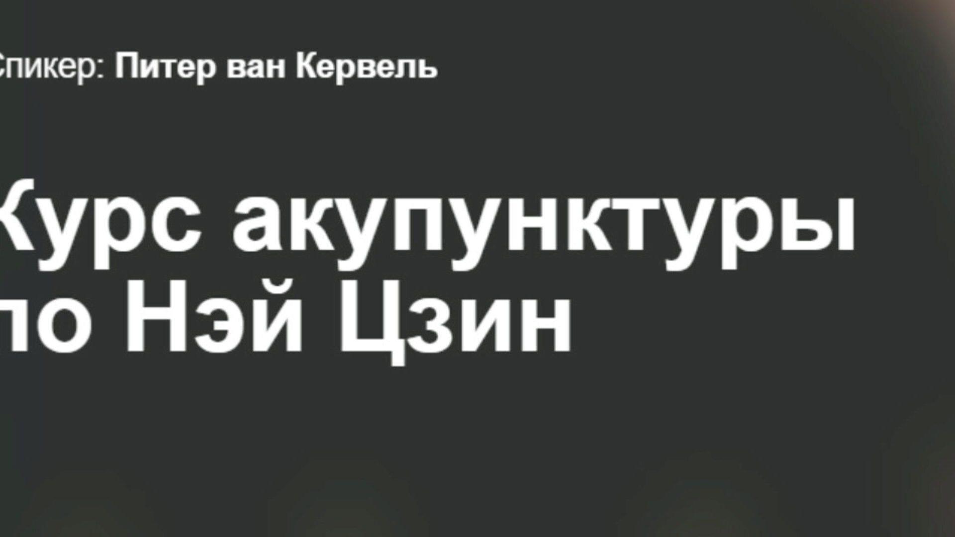 Питер ван Кервель «Курс акупунктуры по Нэй Цзин. Семинар 1» — Краниосакральная академия