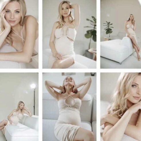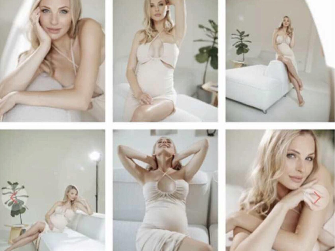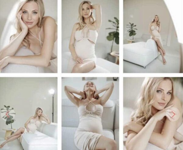 У вас будут стильные позы, в которых не будет постоянного акцента рук на животе.