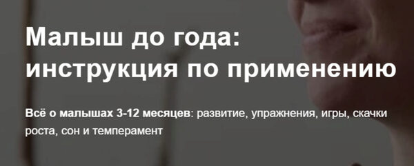 Курс-пособие о развитии ребёнка от 3 до 12 месяцев. Уроки в курсе поделены на блоки по возрастам: 3-6, 6-9, 9-12 месяцев.