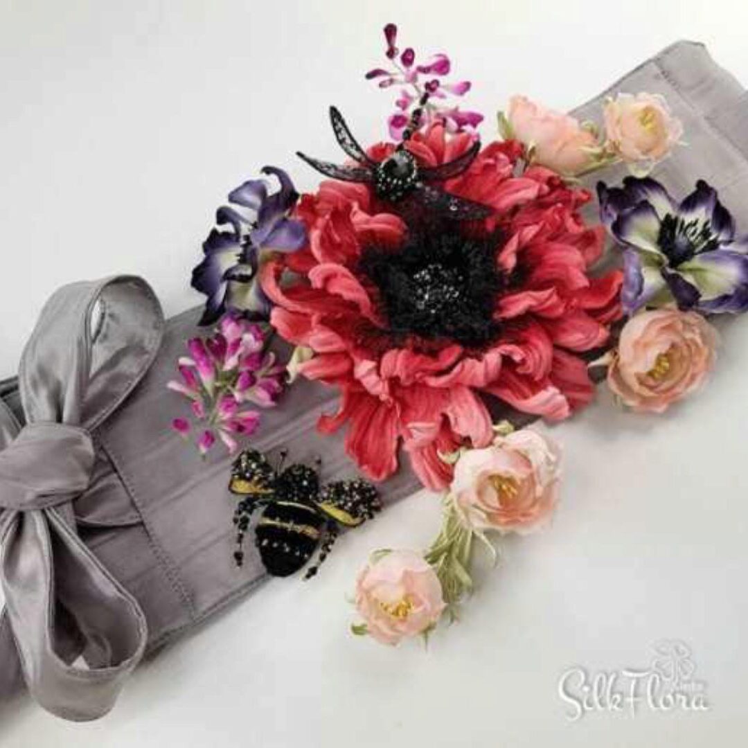 Инструкция по композиции готового изделия и кутюрное крепление всех элементов на кушаке.