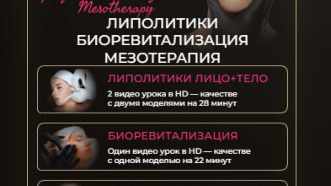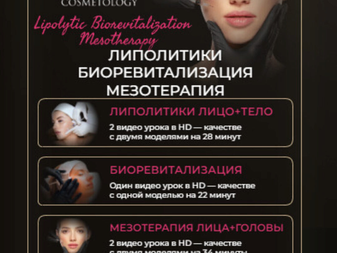 ОПИСАНИЕ КУРСА МЕЗОТЕРАПИЯ И БИОРЕВИТАЛИЗАЦИЯ Курс Мезотерапия + или биоревитализация разработан для помощи косметологам в освоении новых инъекционных методик или улучшении уже имеющихся знаний. ПРОГРАММА КУРСА Мезотерапия лица (витамины) Мезотерапия волос (витамины) Мезотерапия тела ( ЛИПОЛИТИКИ)