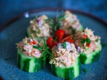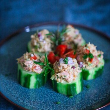 - Рулетики из огурца с начинкой из феты и вяленых помидоров