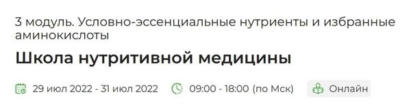 Отзывы о курсе [PreventAge] Школа нутритивной медицины. 3 модуль. Условно-эссенциальные нутриенты и избранные аминокислоты от Александры Рыбаковой