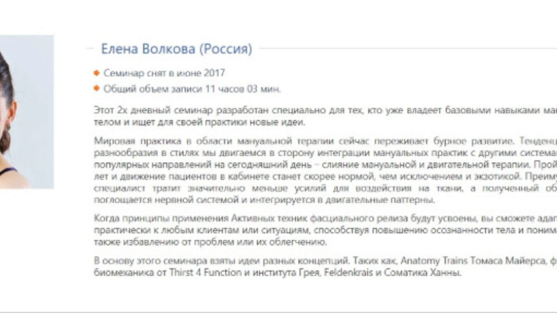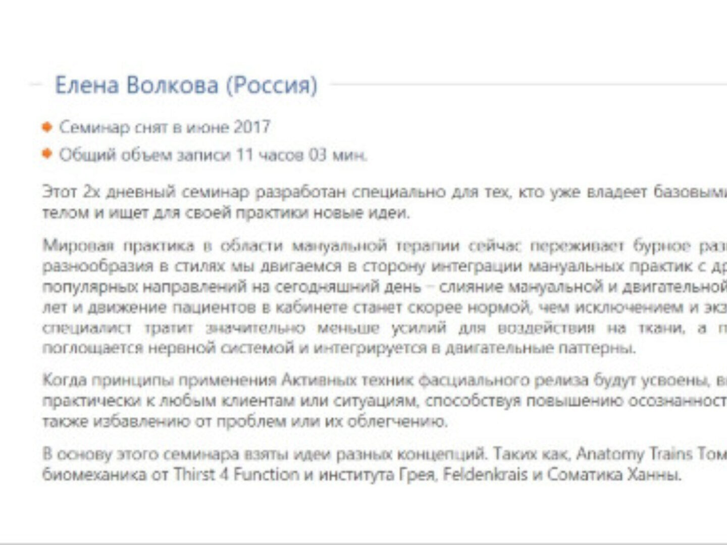 Отзывы о курсе ПРО техники МФР в работе тренера (Елена Волкова) 2017 от Елены Волковой