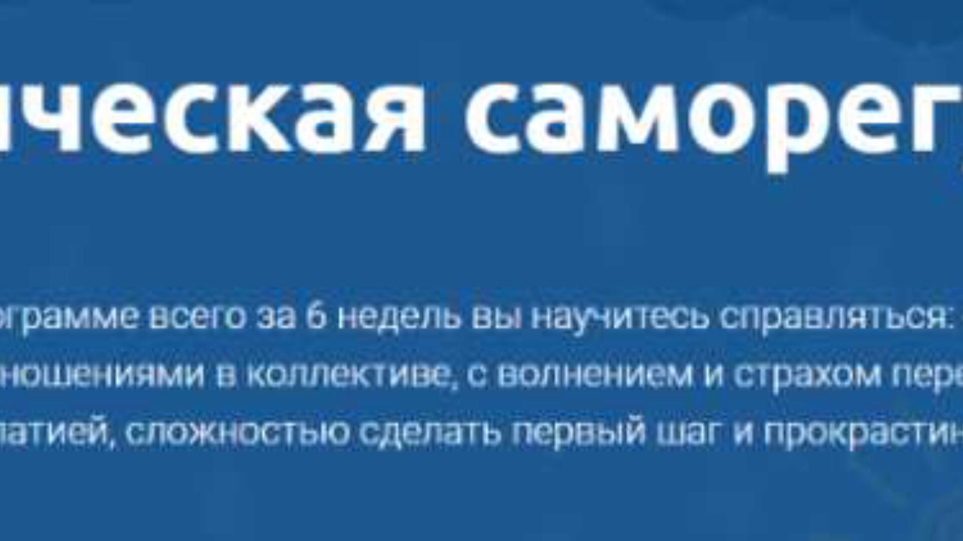 На этой онлайн-программе всего за 6 недель вы научитесь справляться: со стрессом на работе и учебе, с трудными отношениями в коллективе, с волнением и страхом перед важными событиями, с апатией, сложностью сделать первый шаг и прокрастинацией