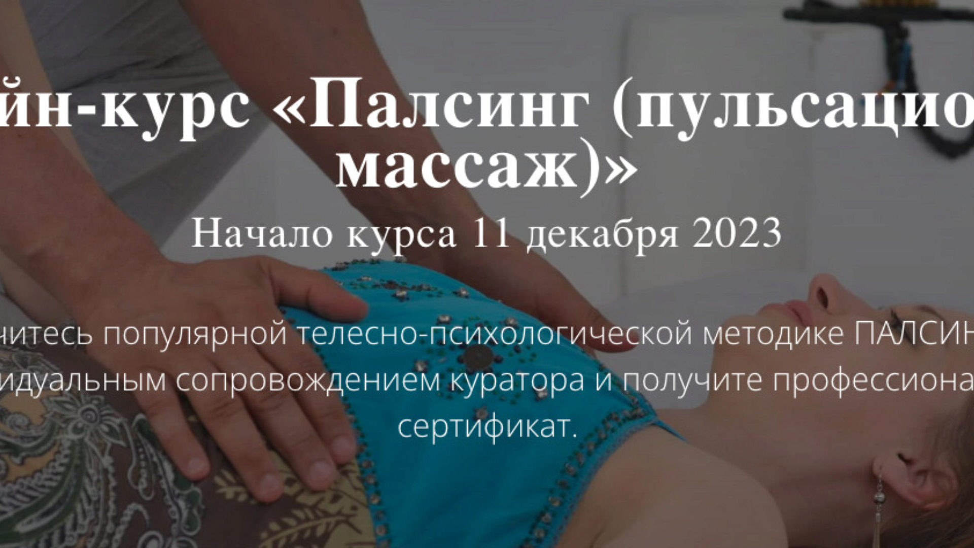 Онлайн-курс «Холистический палсинг» Скрытый текст. Доступен только зарегистрированным пользователям. Урок 1. О палсинге Урок 2. 7 принципов холистического палсинга Урок 3. О связи палсинга и эмоций Урок 4. Виды волн в палсинге Урок 5. Поперечная волна Урок 6. Продольная волна Урок 7. Диагональная